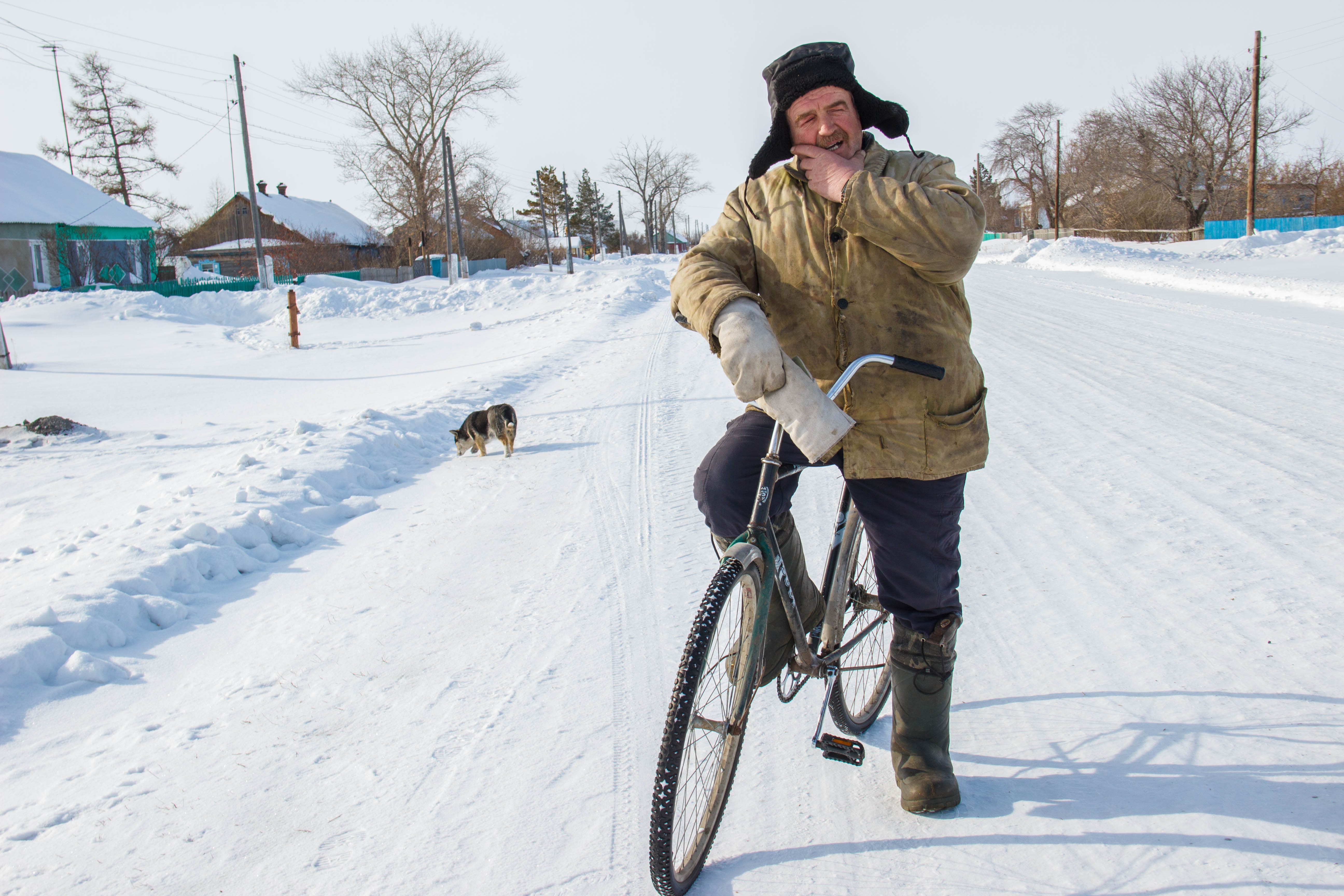 Анатолий Гусак, несмотря на 15-градусный мороз, передвигается по деревне на велосипеде. Это единственное его транспортное средство: