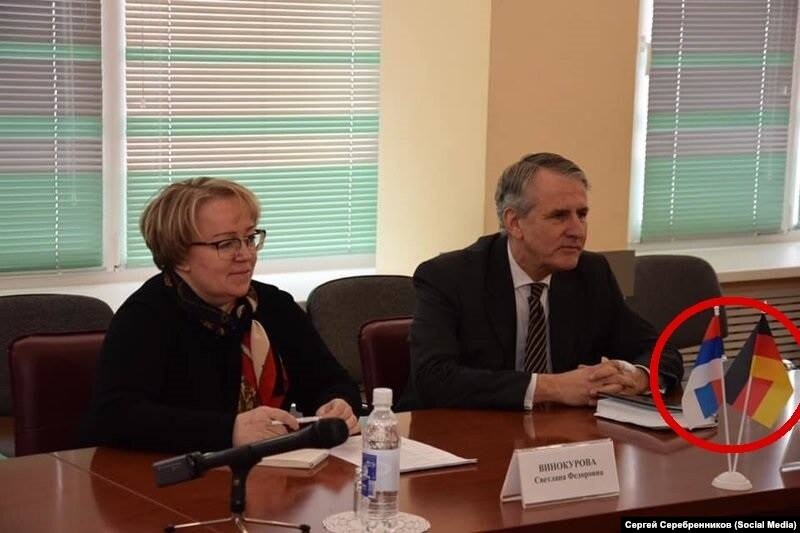 В Братске перед генконсулом Петером Бломайером, приехавшим на встречу с мэром Сергеем Серебренниковым, выставили флаги Германии и России, один из которых оказался перевернут. Фото со встречи Сереберенников опубликовал на своей странице в соцсети.