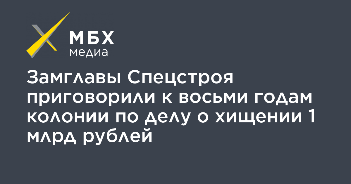 Замглавы Спецстроя приговорили к восьми годам колонии по делу о хищении 1 млрд рублей