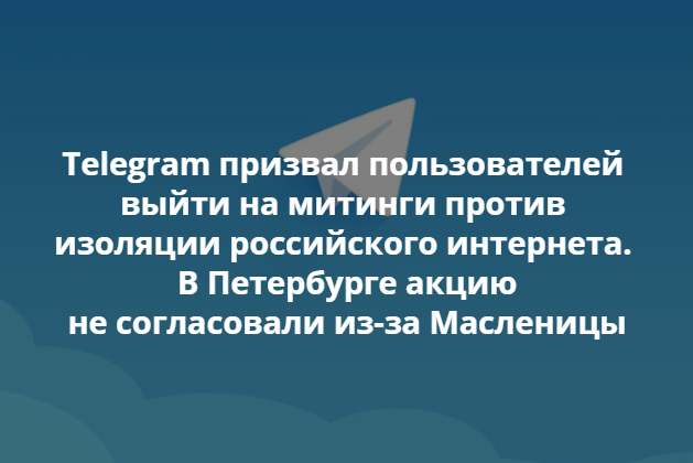 Telegram призвал пользователей выйти на акции против изоляции российского интернета 10 марта.