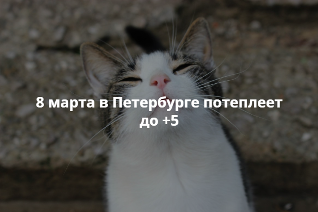 Днем 8 марта в Петербурге потеплеет до +5 градусов, сообщили синоптики.