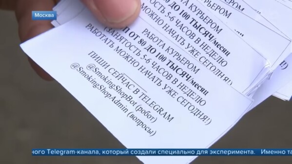На Первом канале отметили, что курьерами часто становятся подростки, которых заманивают объявлениями в интернете: «Работать всего пару часов в неделю и зарабатывать при этом 100 тысяч рублей. Главное — не задавать лишних вопросов, что передаёшь и кому». В качестве эксперимента корреспондент Дмитрий Кулько попробовал нанять молодых людей наркокурьерами на улицах Москвы.