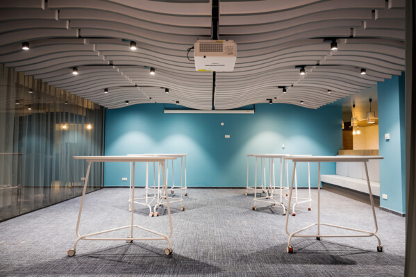 В новом офисе «Сбербанка» в Москве есть комната с похожим потолком и цветом стен.