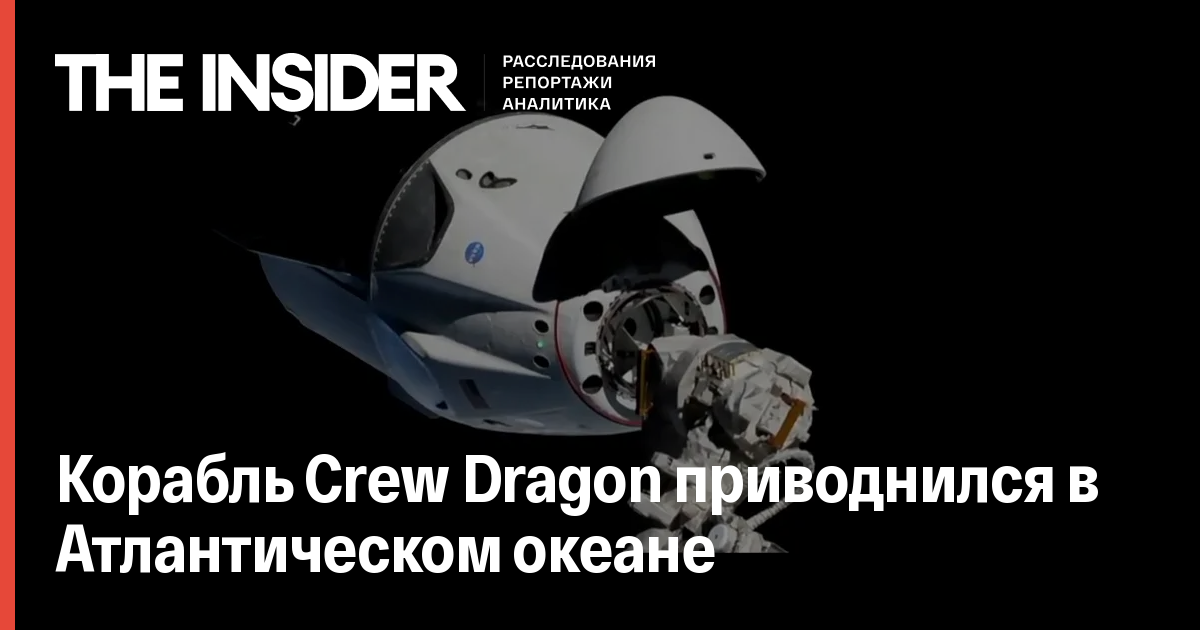 Космический корабль Crew Dragon компании SpaceX успешно приводнился в Атлантическом океане недалеко от мыса Канаверал, сообщает «Би-би-си».
