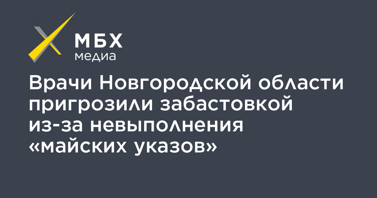 Врачи Новгородской области пригрозили с 18 марта устроить забастовку, если власти региона не повысят им зарплаты и не увеличат количество койко-мест в больницах в соответствии с «майскими указами» Путина. Об этом «МБХ медиа» сообщил региональный лидер профсоюза врачей Дмитрий Соколов.