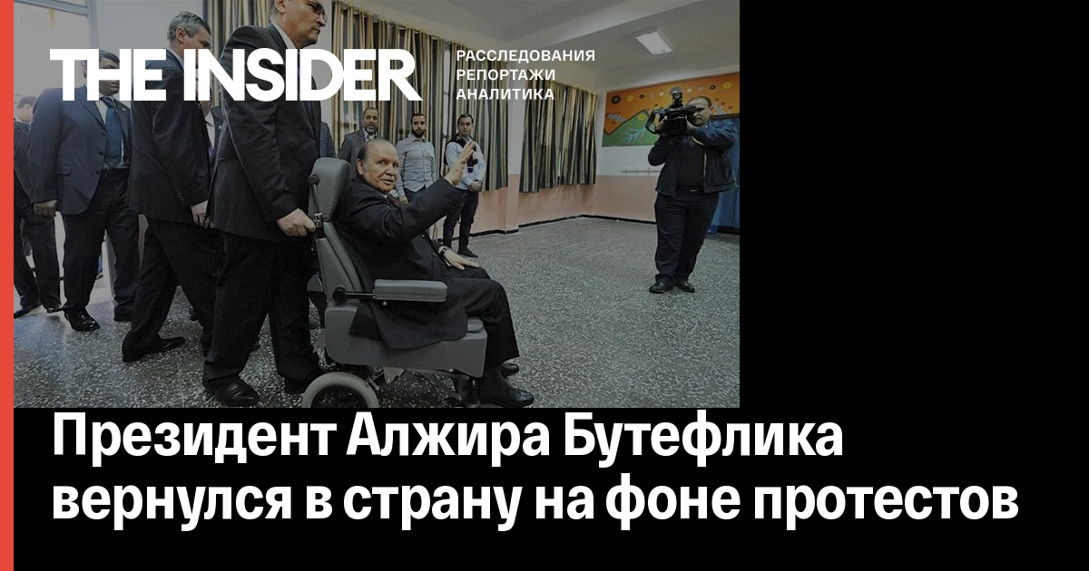 Президент Алжира Абдельазиз Бутефлика вернулся на родину из Швейцарии на фоне протестов в стране. Об этом сообщает Reuters со ссылкой на государственное телевидение Алжира.