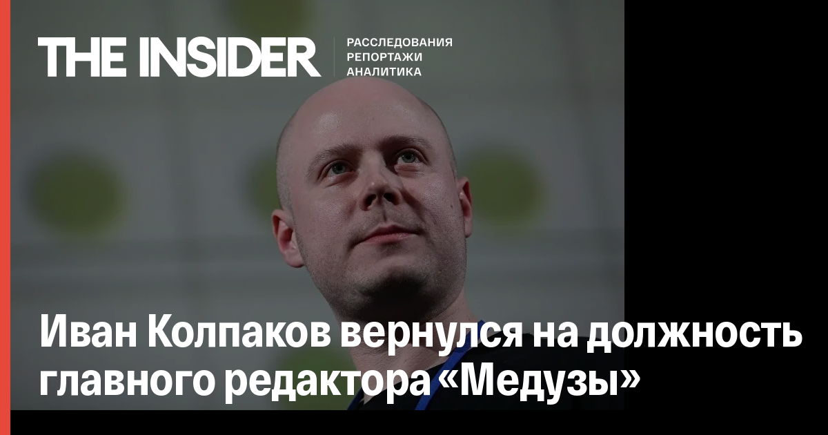 Иван Колпаков вновь занял должность главного редактора интернет-издания «Медуза». Об этом сообщила основатель и директор «Медузы» Галина Тимченко.