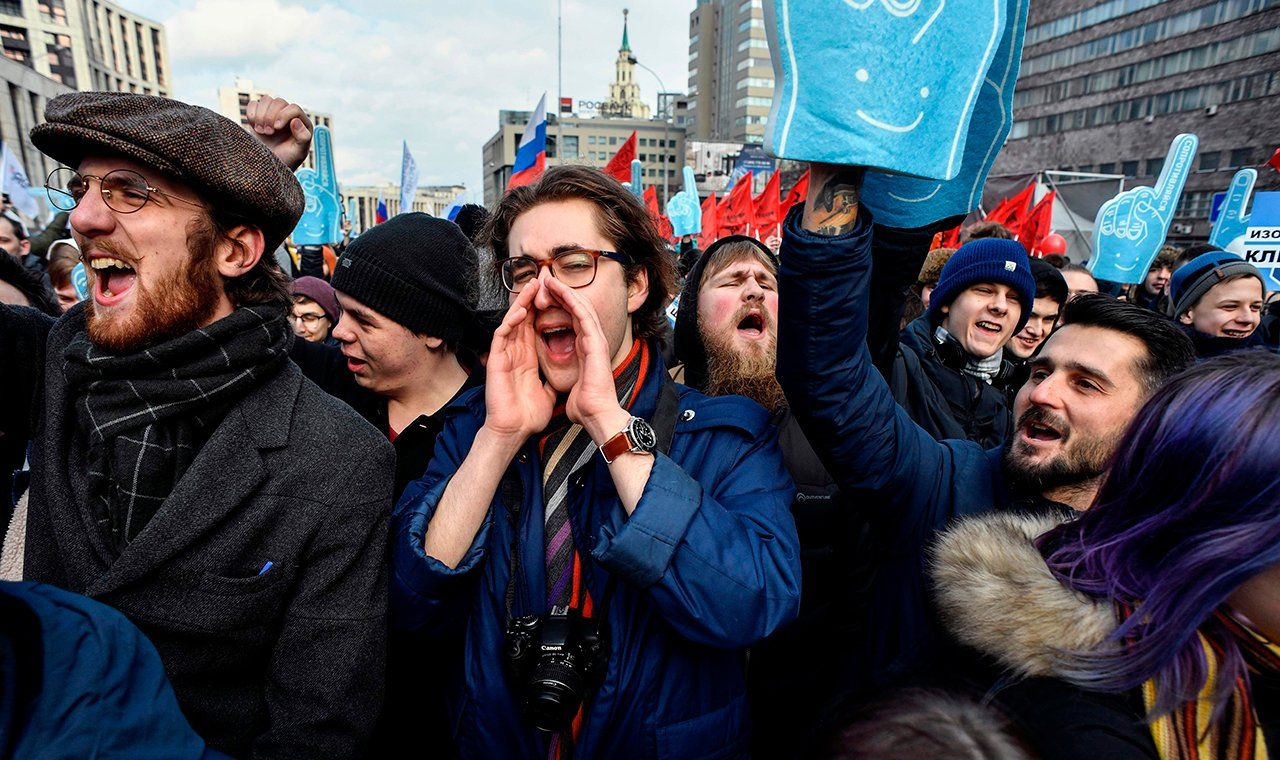 Over the weekend, Russia’s Libertarian Party staged a public demonstration at Sakharov Prospect in Moscow in support of Internet freedom, as two controversial bills outlawing “fake news” and “insults against state officials” make their way through Parliament. According to monitors from “White Counter,” 15,200 people attended the event. (As usual, the estimate from police was smaller: 6,500 people.) Law enforcement detained more than a dozen demonstrators before the rally even began, including eight activists carrying armfuls of blue balloons, which the authorities seized as “unmanned aerial vehicles.” By the end of the day, 28 people had been detained. Similar demonstrations also took place on March 10 in other cities across the country.