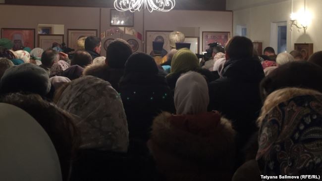 Первая служба в храме на Каштачной горе состоялась утром 17 декабря 2017-го. На молебен в память о репрессированных тогда собрались около ста человек. Маленькое здание больше едва бы вместило. Но вспоминали на службе тысячи жертв политических репрессий, которые нашли последний приют здесь, на краю оврага.