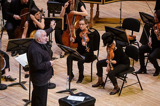 © Пресс-служба Московской филармонии «Музыканты Лувра» По удивительному совпадению, того же Глюка в том же зале опять играли через несколько дней. На сей раз — именитый французский коллектив старинщиков «Музыканты Лувра» с Марком Минковским во главе. В первом отделении была музыка балета «Дон Жуан», пляску фурий из которого мы уже слышали в «Орфее» (Глюк позаимствовал ее сам у себя как раз для укрупнения балетной сцены). Тут никто не танцевал, но пары поднявшихся на портик оркестрантов с кастаньетами казалось достаточно для создания испанской атмосферы, а устрашающего воя натуральных валторн — для того, чтобы нагнать ужаса из преисподней.