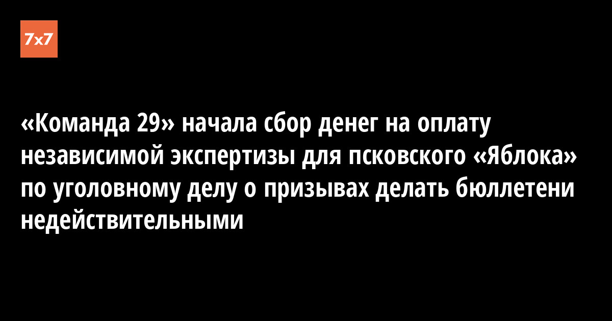 «Команда 29» начала сбор денег на оплату независимой экспертизы для псковского «Яблока» по уголовному делу о призывах делать бюллетени недействительными