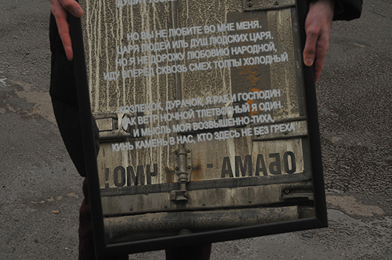 «Только моя Россия» — это сигнал, полученный из альтернативной реальности, повествующий о происходящем там и влияющий на то, что происходит здесь: акция случилась на границе сна и яви, у меня с собой было устройство — текст, которое смогло этот процесс считать.