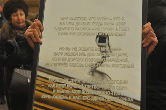 «Только моя Россия» — это роман в стихах, герой которого — это писатель, надевающий маску художника. Маска президента здесь — пустое место, лакуна, это то, что, на самом деле, совершенно ничего не значит, но стягивает на себя весь общественный интерес, все то, что позволяет акции случиться.
