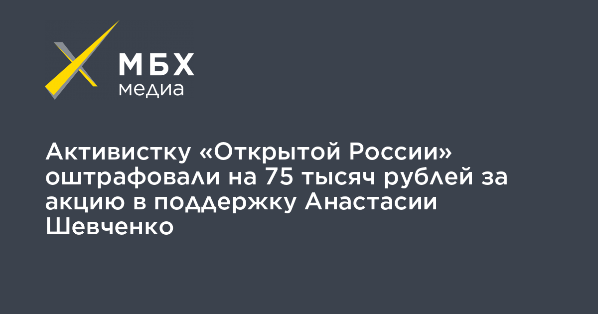 Активистку «Открытой России» оштрафовали на 75 тысяч рублей за акцию в поддержку Анастасии Шевченко