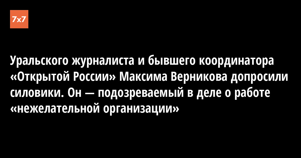 Уральского журналиста и бывшего координатора «Открытой России» Максима Верникова допросили силовики. Он — подозреваемый в деле о работе «нежелательной организации»