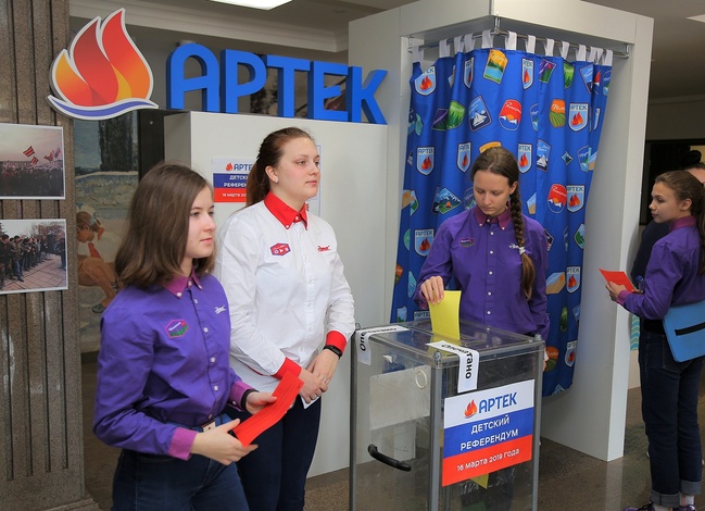 Как сообщает пресс-служба лагеря, на голосование вынесли вопрос об объявлении 2020 года «Годом детской дипломатии в России», в голосовании приняли участие более 3 тысяч артековцев. Также участие в референдуме приняли 250 школьников из Республики Башкортостан соседней России, которые по инициативе российского главы Крыма Сергея Аксенова отдыхают в Евпатории, и в этот день стали гостями детского центра.