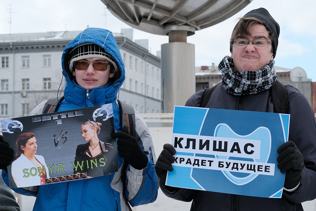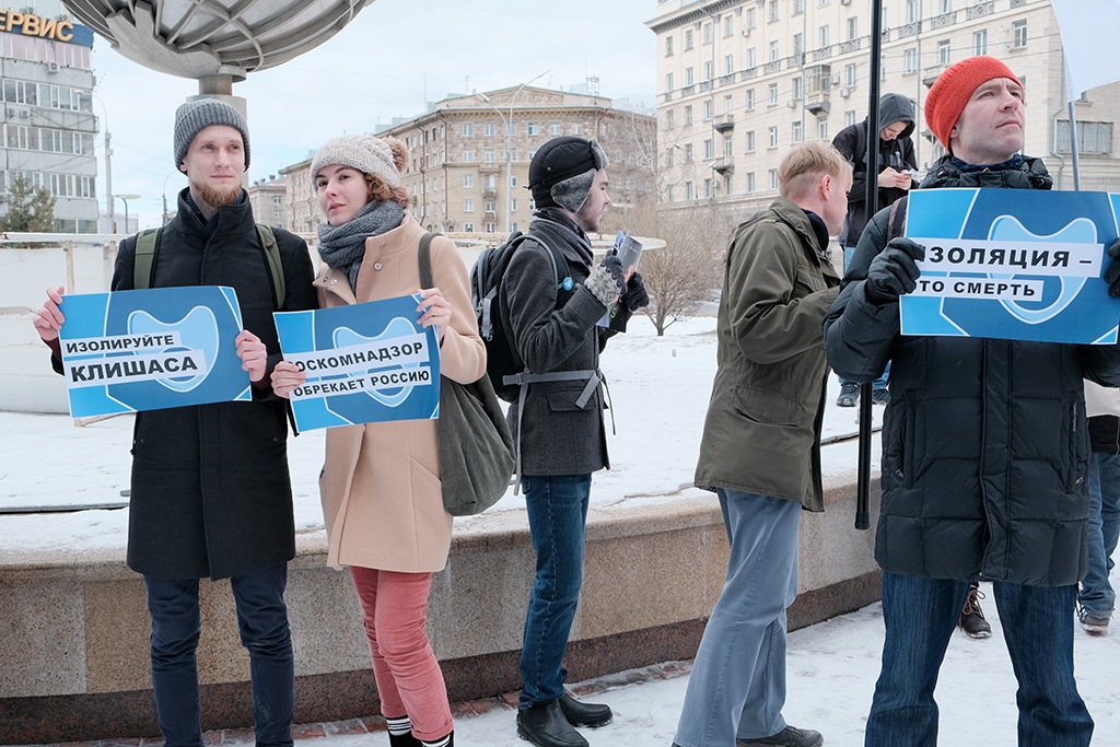 Акцию организовало реготделение Либертарианской партии. На нее также пришли активисты «Яблока» и «Левого фронта». «Изоляция — это смерть», «Свобода — не экстремизм», «Клишас крадет будущее», «Изолируйте Клишаса», было написано на плакатах.