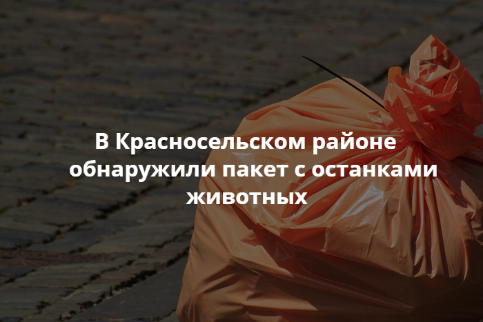 Жительница Красносельского района обратилась в полицию после того, как обнаружила на улице Пограничника Гарькавого полиэтиленовый пакет с останками нескольких животных, сообщает пресс-служба ГУ МВД.