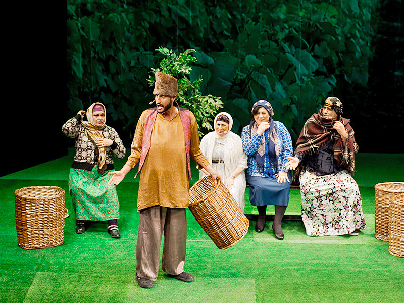 Именно на этом языке джуури (с синхронным переводом на русский) актеры представили на вечере одну из своих самых популярных постановок - музыкальную комедию горско-еврейского драматурга Хизгила Авшалумова (1913-2001) "Кушак бездетности". Традиционно у горских евреев бездетными считались отцы, у которых не было сыновей (дочерей при этом могло быть сколь угодно много). В самой же пьесе рассказывается о трагикомичных ситуациях, в которые попадают жители горско-еврейского колхоза в 1940-е годы.