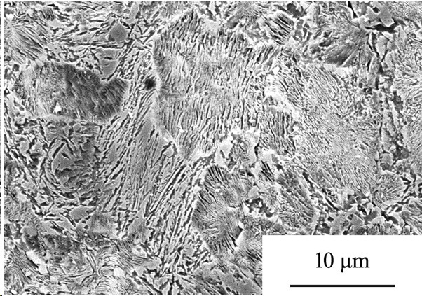 Структура бейнитной фазы Fe-Si-Mn-Cr-V стали под растровым электронным микроскопом