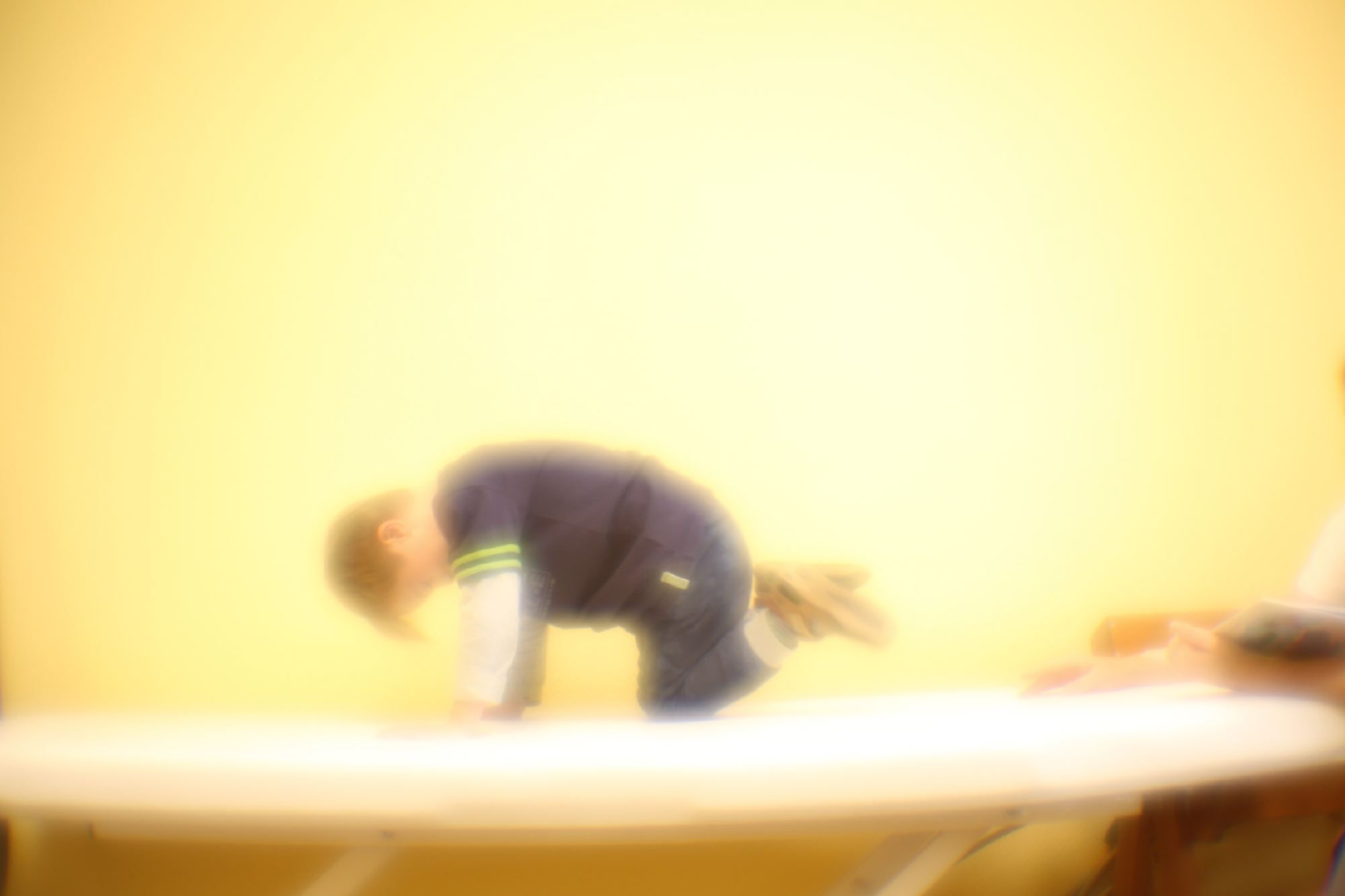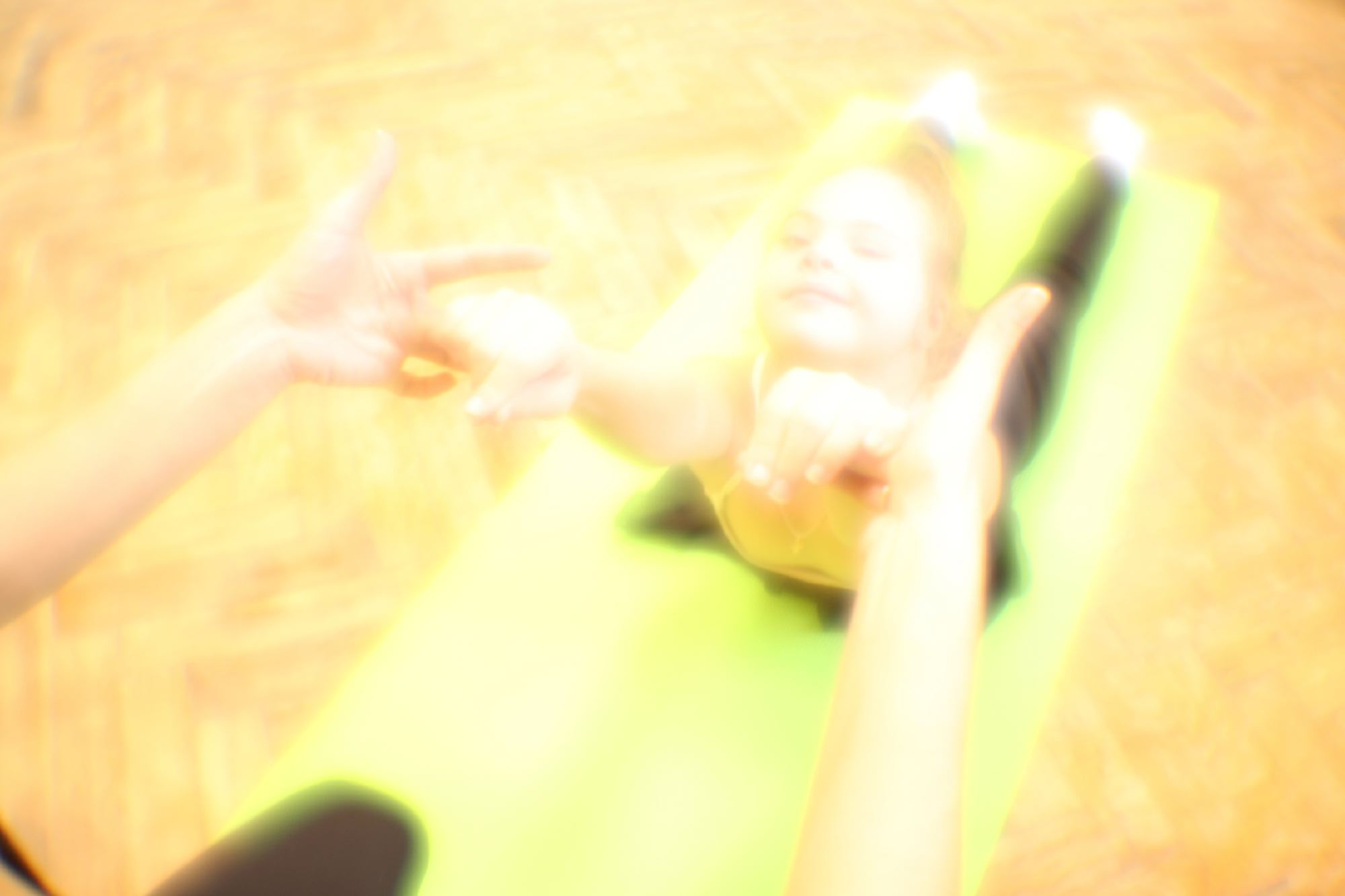 Занятия по художественной гимнастике. Работа с шарами. Гимнастика требует собранности и координации, поэтому получается не все и сразу, но все это хорошо воспитывает характер у ребенка. Желтые шары катятся по полу из рук ребенка в руки преподавателя, напоминая солнце.