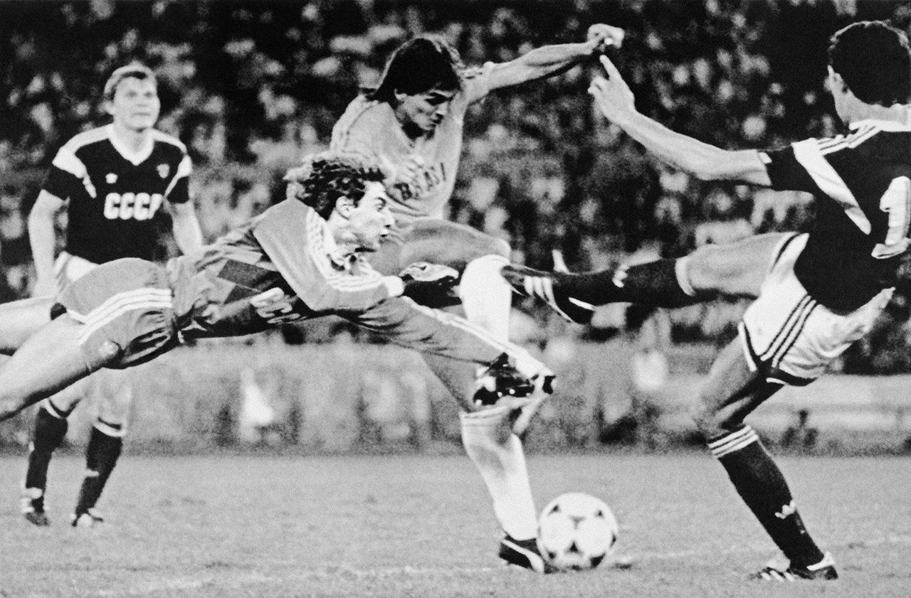 The Soviet football team won the 1956 Olympics and won the European Championship in 1960, but earning the gold medal in the Seoul Olympics might have been the greatest accomplishment in the team’s history. The team’s coach at the time, Anatoly Byshovets, was so eccentric that the famed singer-songwriter Vladimir Vysotsky included him in one of his songs: Byshovets used the minutes immediately before each match to philosophize and recite poetry to his players. In the 1988 final, his team faced a set of Brazilian stars that included future 1994 world champions Taffarel, Bebeto, and super-scorer Romario (who would put more than 1000 balls into the net throughout his career). The match was decided in overtime when commentator Vladimir Maslachenko, himself quite a dramatic figure, shouted what has since become a legendary phrase: “Savichev, run and score, I’m begging you!” Savichev did just that.