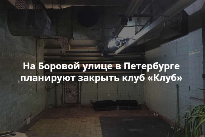 Создатели петербургского клуба «Клуб» на Боровой улице объявили о его закрытии. Информация об этом опубликована в социальных сетях клуба.