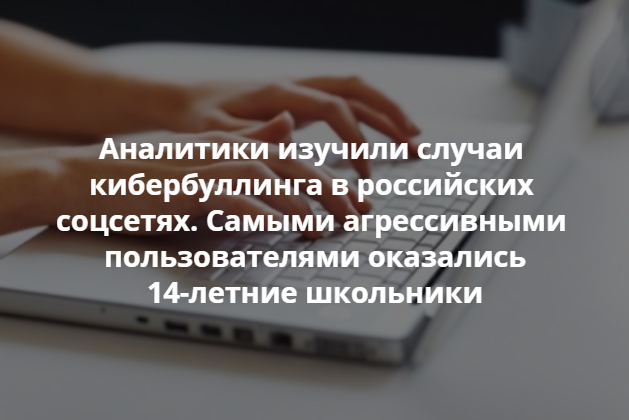 Аналитический центр Brand Analytics провел исследование кибербуллинга в российских социальных медиа (соцсети, форумы и сайты с возможностью комментирования) и выяснил, что агрессивнее всего в интернете себя ведут 14-летние школьники