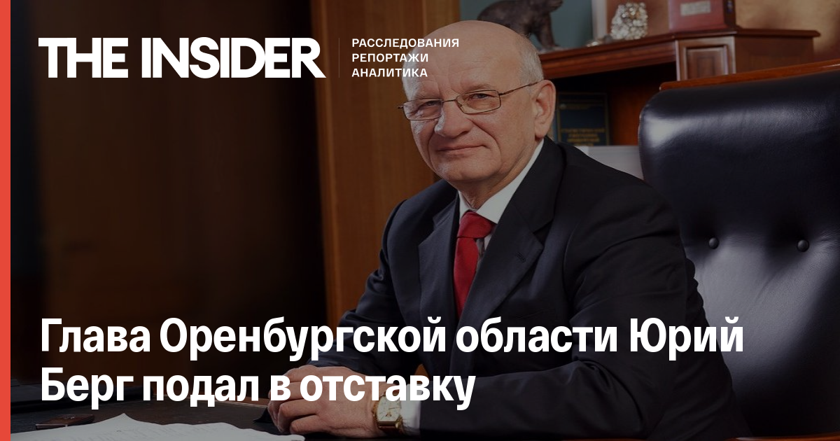 «Губернатор Оренбургской области Юрий Александрович Берг направил президенту Российской Федерации Владимиру Владимировичу Путину прошение об отставке», — говорится в сообщении.