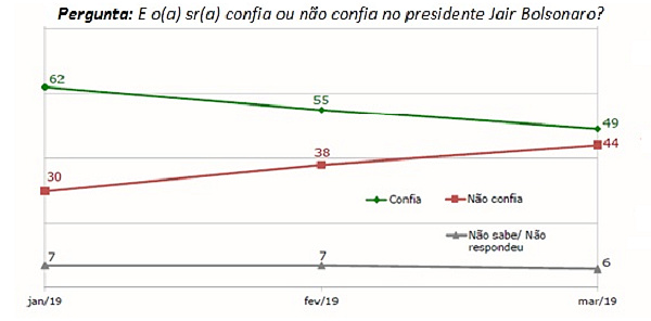 По данным бразильского института общественного мнения Ibope, рейтинг президента Болсонару действительно быстро снижается, но график показывает, что встреча с Трампом, на которой тот внезапно заговорил о возможном вступлении Бразилии в НАТО, на этот процесс практически не повлияла и никакого резкого обрушения не было. С первых дней президентского срока Болсонару рейтинг снижается с постоянной скоростью.