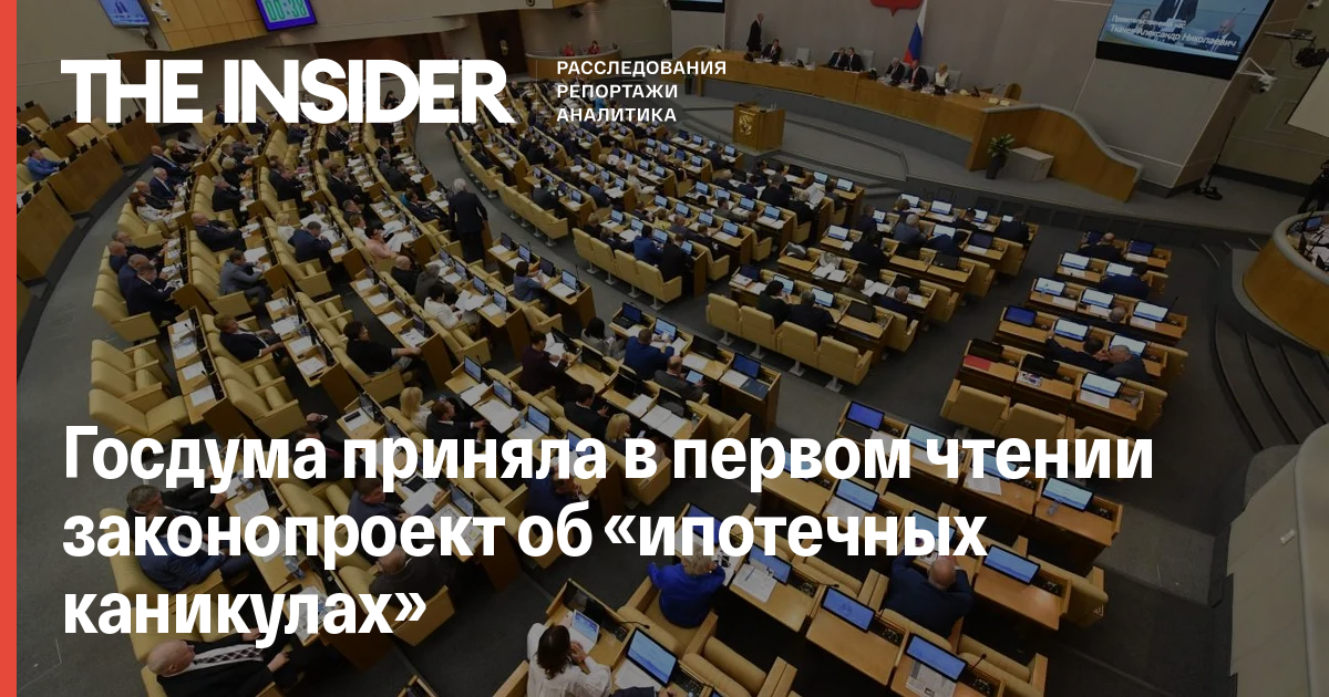 Государственная дума приняла в первом чтении законопроект о предоставлении «ипотечных каникул» россиянам, оказавшимся в «трудной жизненной ситуации». Текст законопроекта опубликован на сайте нижней палаты парламента.