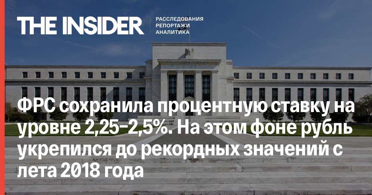 ФРС сохранила процентную ставку на уровне 2,25–2,5%. На этом фоне рубль укрепился до рекордных значений с лета 2018 года