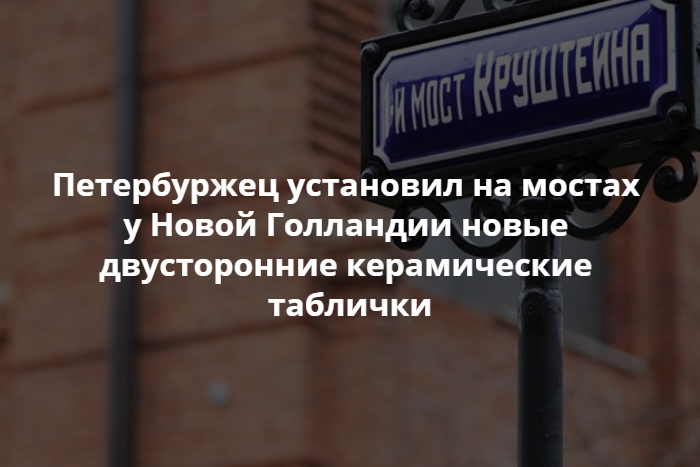 Петербургский художник-керамист Юрий Осинин установил на двух мостах у Новой Голландии двусторонние керамические указатели с названиями. Об этом Осинин рассказал в своем фейсбуке.