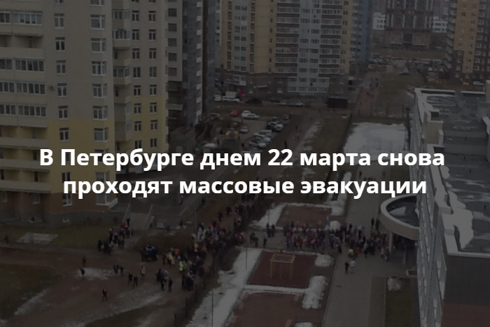 В Петербурге днем 22 марта снова проходят массовые эвакуации. Об этом рассказывают пользователи в социальных сетях.