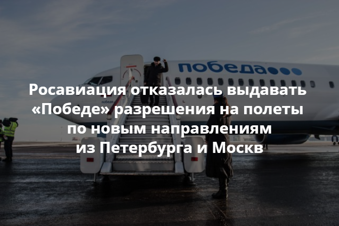 Росавиация отказалась выдавать авиакомпании «Победа» разрешения на полеты по новым направлениям из Петербурга, Москвы и Краснодара. Об этом сообщается на сайте ведомства.