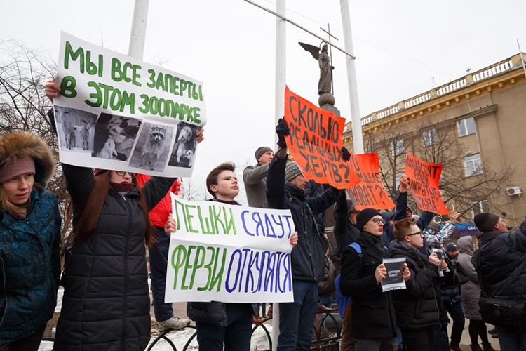 Первая акция прошла вечером 26 марта в Беслане; 27-го на улицы вышли Москва, Санкт-Петербург, Екатеринбург, Новосибирск, Чита, Хабаровск, Нижнекамск, Пенза, Воронеж, Красноярск, Мурманск, Краснодар, Иркутск, Калининград, Новороссийск, Волгоград, Киров, Нижний Новгород, Омск, Ярославль, Пермь, Самара, Челябинск, Смоленск… В Кемерове акция памяти перешла в массовый митинг протеста: люди требовали раскрытия информации о погибших и раненых, объяснений, почему в торговом центре оказались закрыты пожарные выходы и двери кинотеатра, в котором находились дети, наказания виновных и властей за бездействие. Лозунг «Наша страна — это “Зимняя вишня”, а мы в ней — контактный зоопарк» кочевал из города в город. Я пошла на акцию в Петербурге: на оцепленном полицией Марсовом поле люди молча толпились у Вечного огня, подносили игрушки и цветы. Когда менты с мегафонами стали призывать собравшихся разойтись и прекратить несанкционированное мероприятие, народ заскандировал: «Позор! Позор!»