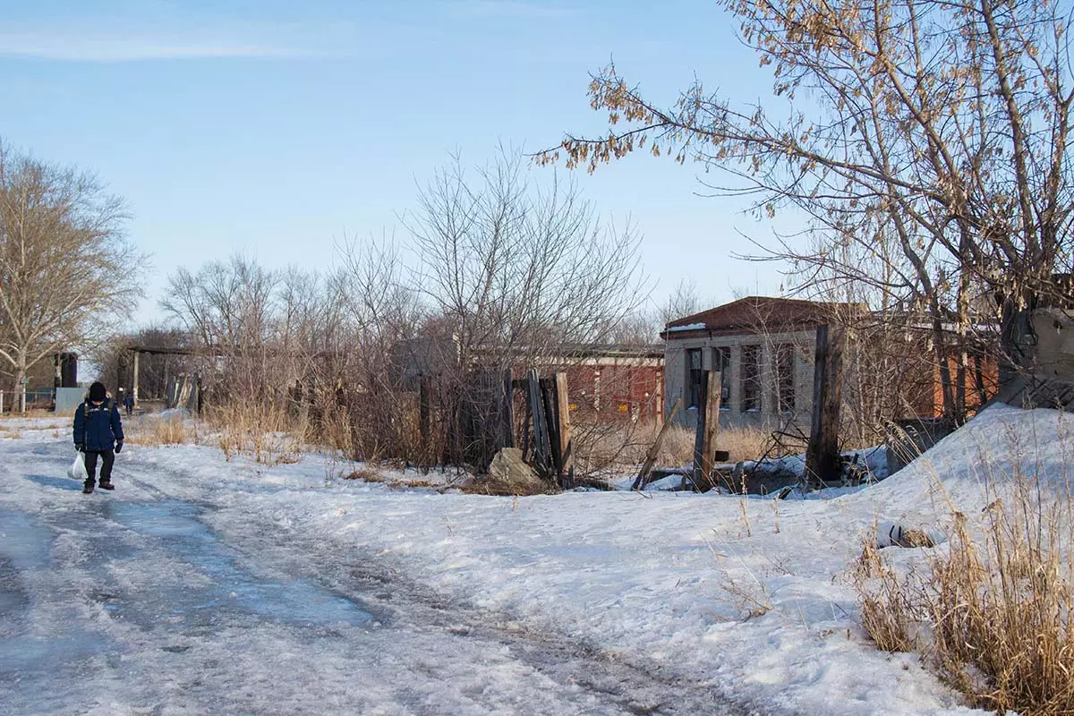 От остановки до дома, где живет семья Димы Кондякова, одного из троих пострадавших подростков, ведет только одна дорога – через территорию бывшей воинской части N221458. Идти приходится мимо разваливающейся котельной, резервуаров под мазут, заброшенных ангаров и многочисленных складских помещений с выбитыми стеклами и треснувшими стенами. Если тебя притягивает мрачная романтика запустения, ты без труда попадешь внутрь периметра: заборы тут все больше символические, хотя кое-где до сих пор сохранилась колючая проволока поверх ограждений. Однако опытные местные предостерегают: с протоптанного пути лучше не сворачивать, иначе можно провалиться в яму. Есть тут и другие, «смертельные ловушки»: например, бетонные плиты, грозящие обрушиться в любой момент, полузатопленные подвалы со строительным мусором, люки-лазы без крышек, уходящие вглубь на несколько метров.