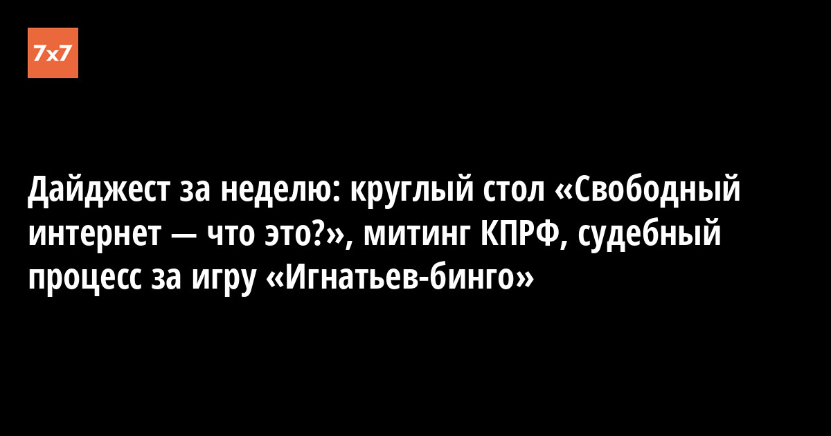 Дайджест за неделю: круглый стол «Свободный интернет — что это?», митинг КПРФ, судебный процесс за игру «Игнатьев-бинго»