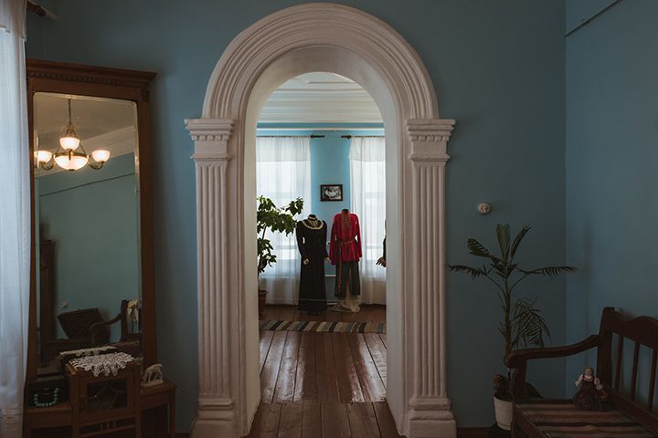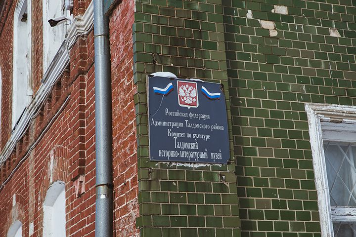 Талдомский краеведческий музей возник в совсем другом контексте. Музей занял особняк, построенный семьёй купца Волкова, торговца обувью, старообрядца и мецената. Богатый каменный дом с закруглённой формы окнами и отделанным керамикой фасадом был построен в 1900-е годы. Шикарными домами в городском стиле здесь обладал далеко не каждый купец, но в окружающих Талдом деревнях до сих пор можно увидеть каменные сараи в стиле модерн, а среди крестьянских домов встречаются настоящие трёхэтажные палаццо. Талдом был очень богатым селом.