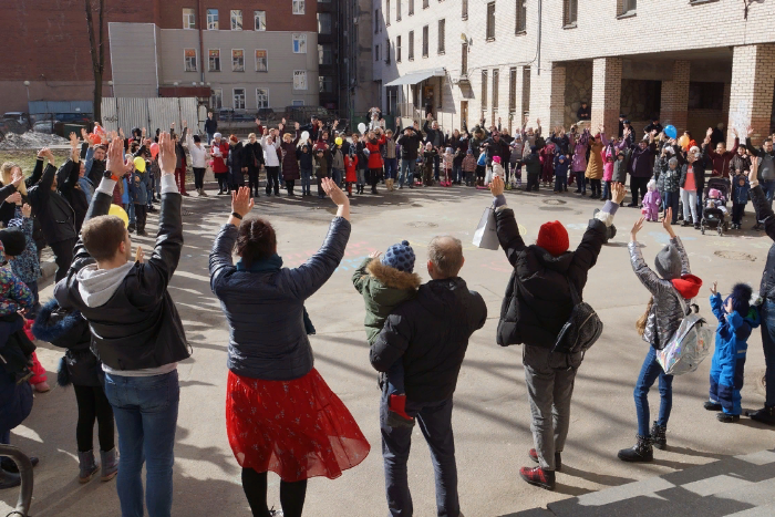 В ходе акции местные жители формировали кольцо вокруг поликлиники и перед зданием. На мероприятии дети также разукрасили мелками асфальт перед поликлиникой. По словам организаторов, врачи поликлиники тоже приняли участие в сходе.