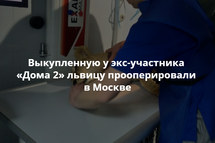Львицу Симону, которую в январе центр «Велес» выкупил у бывшего участника реалити-шоу «Дом 2» Александра Васюковича, прооперировали в Москве. Об этом сообщили в центре «Велес».