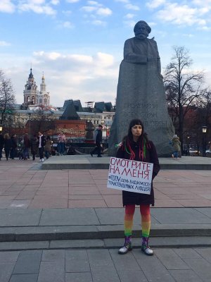 В Москве задержали ЛГБТ-активистку с плакатом о международном дне видимости трансгендерных людей