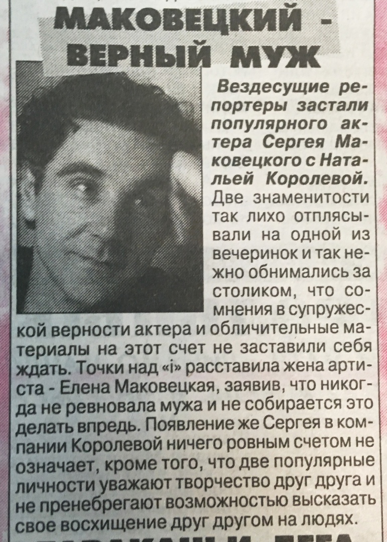 Газеты обсуждают поведение актера Сергея Маковецкого, уличенного в симпатиях к Наташе Королевой.