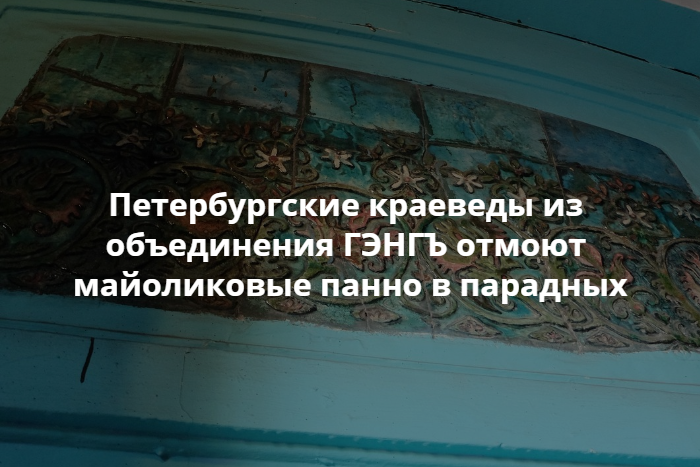 Петербургские краеведы из объединения ГЭНГЪ совместно с волонтерами 7 апреля отмоют майоликовые панно в доходном доме на 17-й линии Васильевского острова, 70. Об этом сообщают организаторы в социальных сетях.