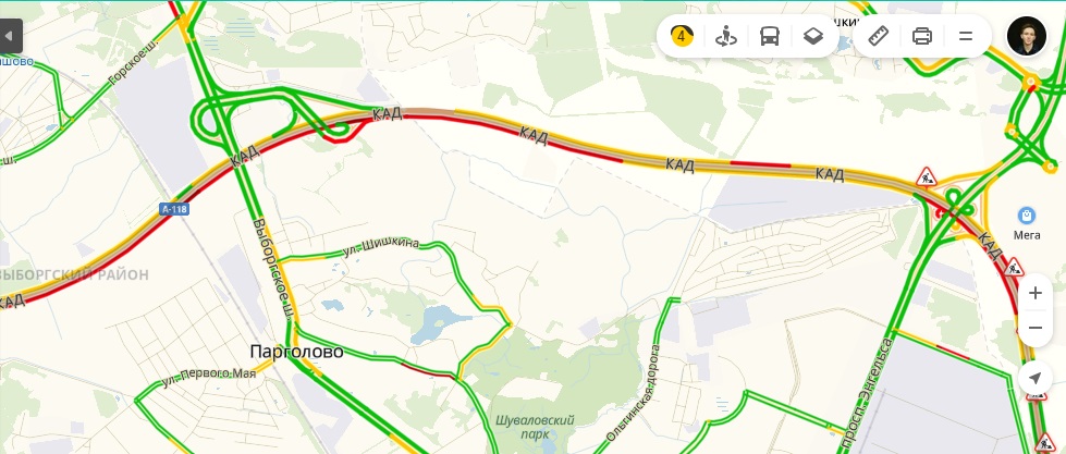 Днем 1 апреля на севере КАД образовалась 10-километровая пробка. Она стала появляться с утра и до сих пор тянется от проспекта Энгельса до Выборгского шоссе.