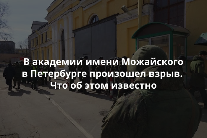 По факту взрыва в академии имени Можайского возбуждено уголовное дело по статье о покушении на убийство двух и более лиц общеопасным способом (ч. 3 ст. 30, п.п. «а,е» ч. 2 ст. 105 УК РФ). Об этом сообщает СК.