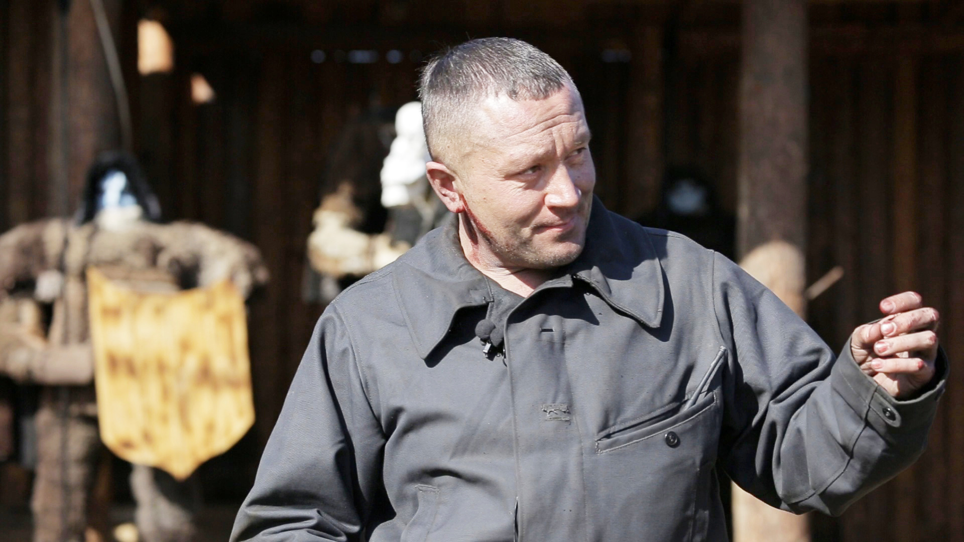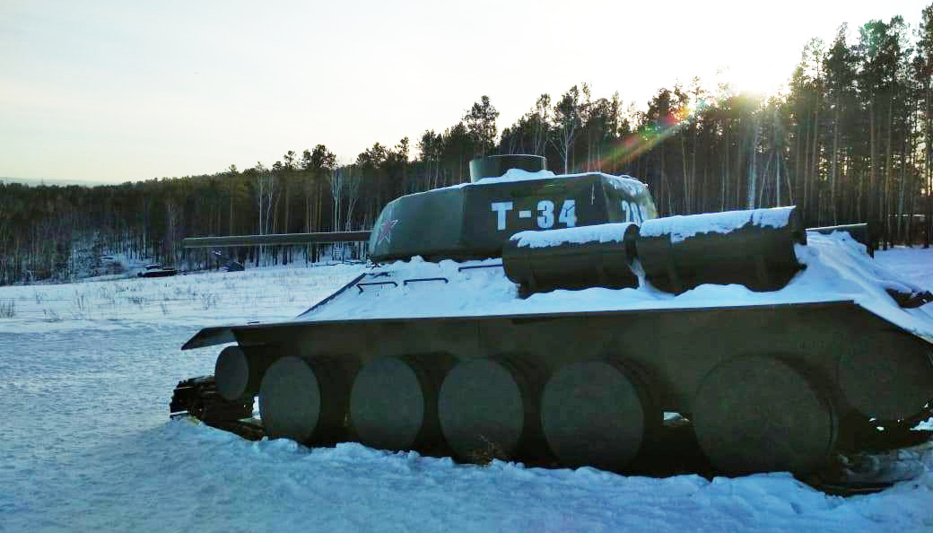 Сейчас на поле боя снимают военный фильм, и для посетителей эта часть экспозиции временно закрыта. Александру Расторгуеву и его сотрудникам авторы картины предложили роли. Это интервью он давал в перерыве между съемками. Лицо – в копоти, голова и руки – в крови. Александр исполнял роль командира танковой бригады, их машина горела, его герой был ранен и сам вытаскивал бойцов из горящего танка.