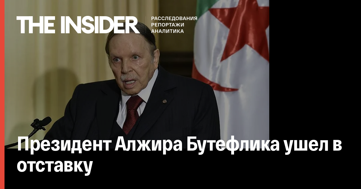 Президент Алжира Абдель Азиз Бутефлика ушел в отставку, сообщает Reuters.