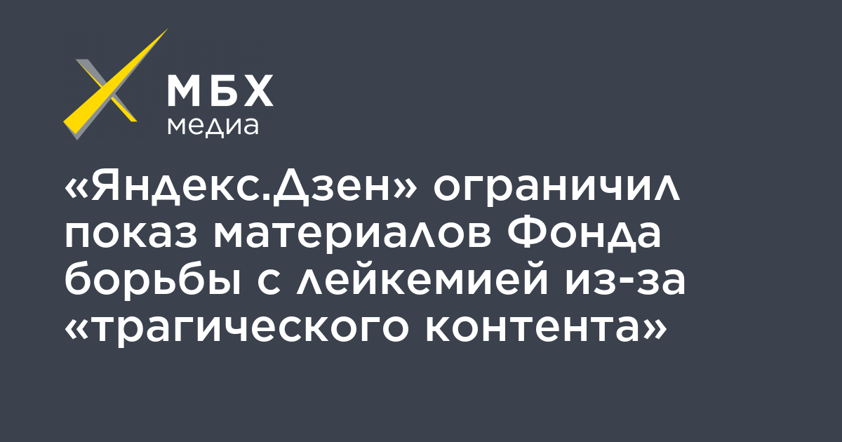 «Яндекс.Дзен» ограничил показ материалов Фонда борьбы с лейкемией из-за «трагического контента»