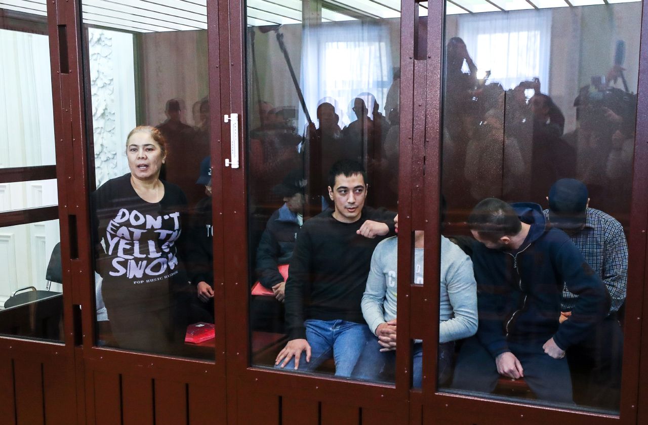 «Перед Россией у меня никакой вины нет… Моя совесть чиста», — говорит через стекло журналистам единственная женщина в «аквариуме»; позади нее сидят 10 мужчин. Женщину зовут Шохиста Каримова, до задержания по делу о теракте в петербургском метро она работала заготовщицей овощей в кафе. Каримова просит репортеров рассказать людям, что она невиновна.